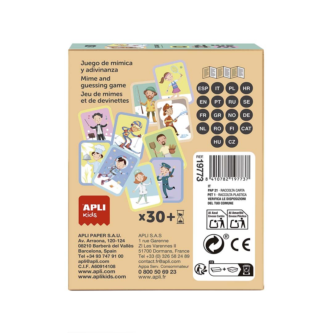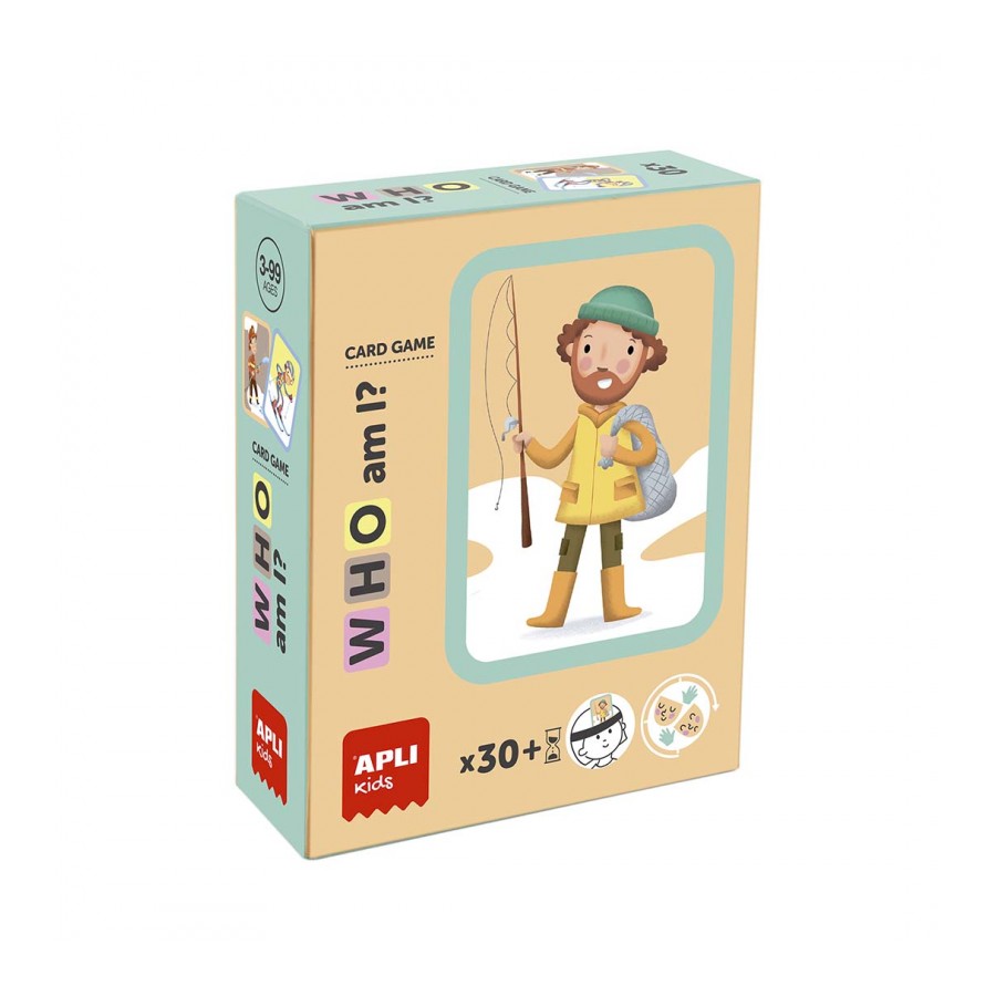 Jogo de cartas "Quem sou eu?" para se divertir com mímicas e charadas com o tema das profissões. Inclui 30 cartas dupla face, uma ampulheta para controlar o tempo, uma fita adesiva para colocar na testa e um menu suspenso com instruções. Tamanho da carta: 63 x 88 mm.