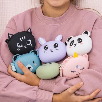 Carteira de silicone prática para organizar moedas ou pequenos itens em formato de animal – unicórnio, gato, coelho, dinossauro, urso e Panda
